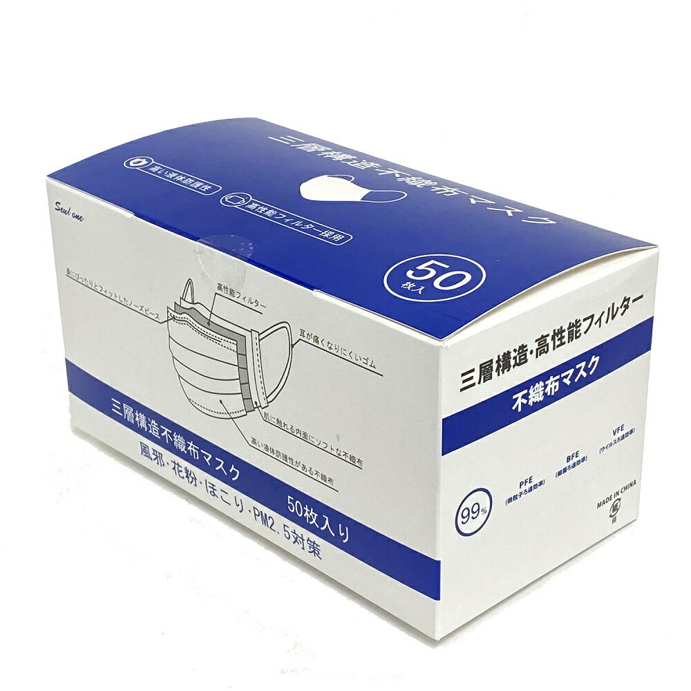 マスク 【 1箱 50枚入 】 国内発送 在庫あり 3層構造 使い捨て 不織布マスク ウィルス 花粉 風邪 対策 予防 飛沫カット ほこり PM2.5対応
