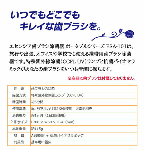 エセンシア 歯ブラシ除菌器 ポータブル ESA-101携帯用 ポータブル 歯ブラシ除菌器 除菌器 エセンシア 紫外線 除菌 UV除菌器