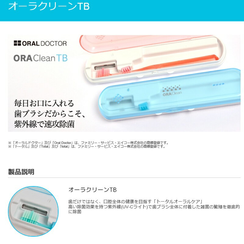 《200円クーポン配布》 オーラルドクター オーラクリーンTB 2個以上購入で送料無料 DV-140AKブルー DV-140PKピンク 歯ブラシ 除菌 ハブラシ 紫外線除菌 ハブラシ除菌庫 UV除菌 歯ブラシケース