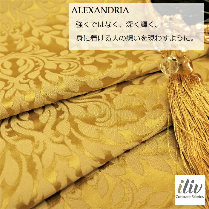 輸入生地 イギリス生地名:ALEXANDRIA/Goldブランド名:iliv(アイリブ/イギリス)ハーフカット*50cm以上10cm単位*草木柄・クラシック・カルトナージュ・生地・ダマスク柄・ゴールド・金色